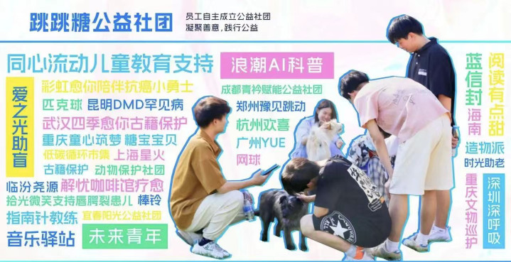 区别于很多企业公益“自上而下”的指令式推进模式,跳跳糖员工公益带有很强的“字节跳动”色彩,注重“员工主导+专业落地”:内部员工可根据技术特长与个人兴趣,发起公益社团、设计公益项目,企业层面则提供对接公益机构、搭建技术平台、协调志愿时间等支持。